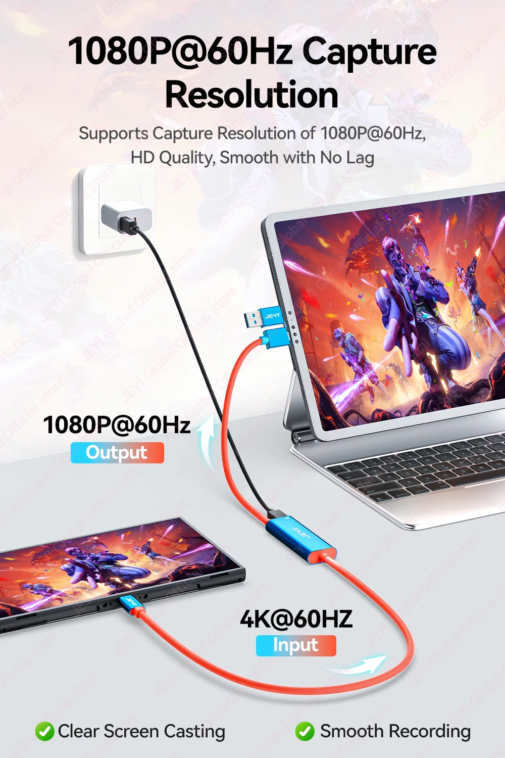 Admite resolución de captura de 1080P@60Hz, calidad HD, fluida sin demoras