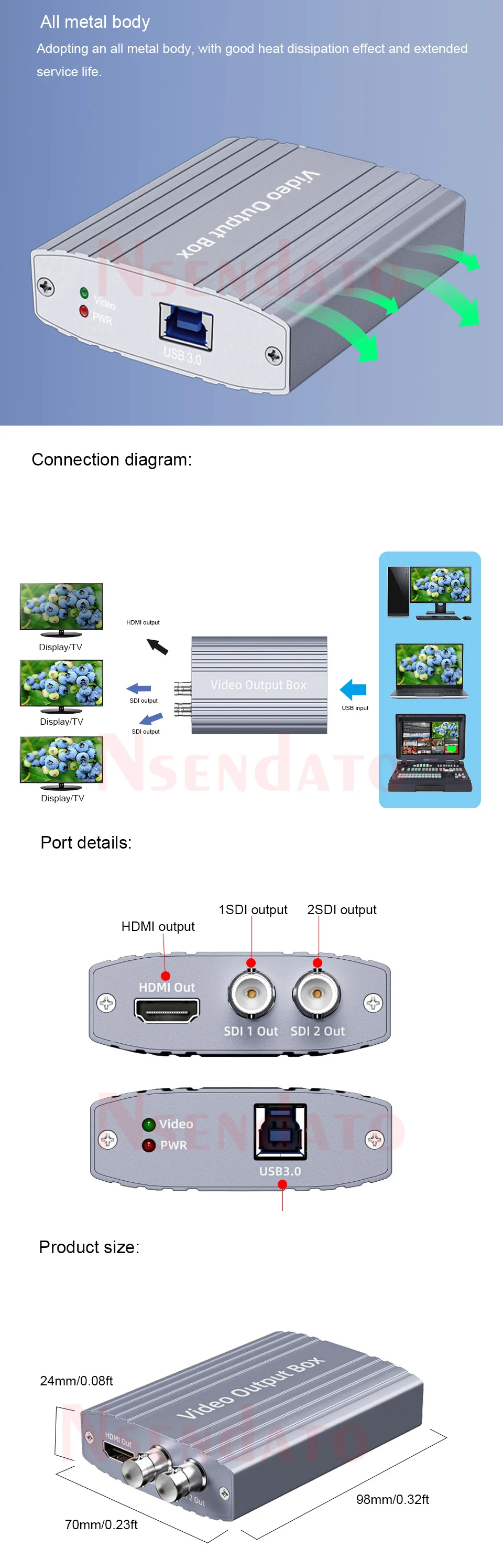 1080p USB 3,0 USB3.0 a HDMI Dual SDI salida de vídeo Grabber tarjeta de captura Dongle Box para Mac Vmix Cámara Linux PC a Monitor de TV