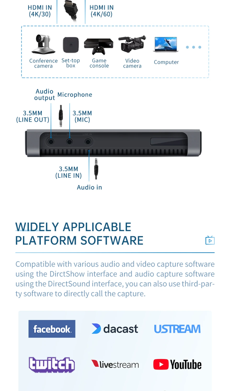 Vmix,Wirecast,OBS,VJ,Xsplit, codificador de Windows Media, codificador de Adobe Flash Media Live, VLC, AMCAP, etc.