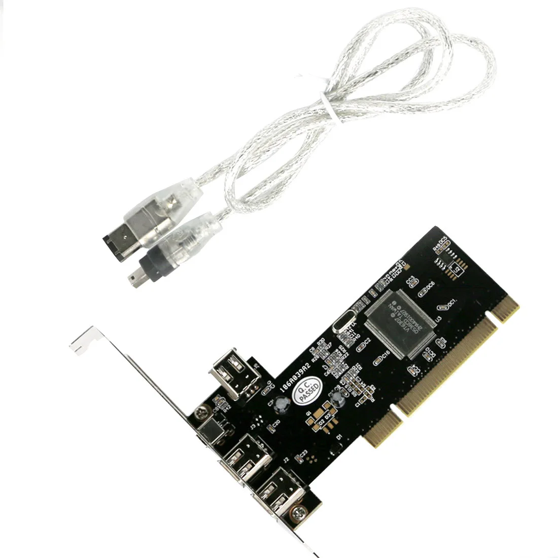 Comprar Tarjeta de captura de vídeo PCI 1394A de 4 puertos, adaptador de extensión de tarjeta controladora PCI 3x 6 pines 1x 4 pines con Cable IEEE 1394 para Firewire