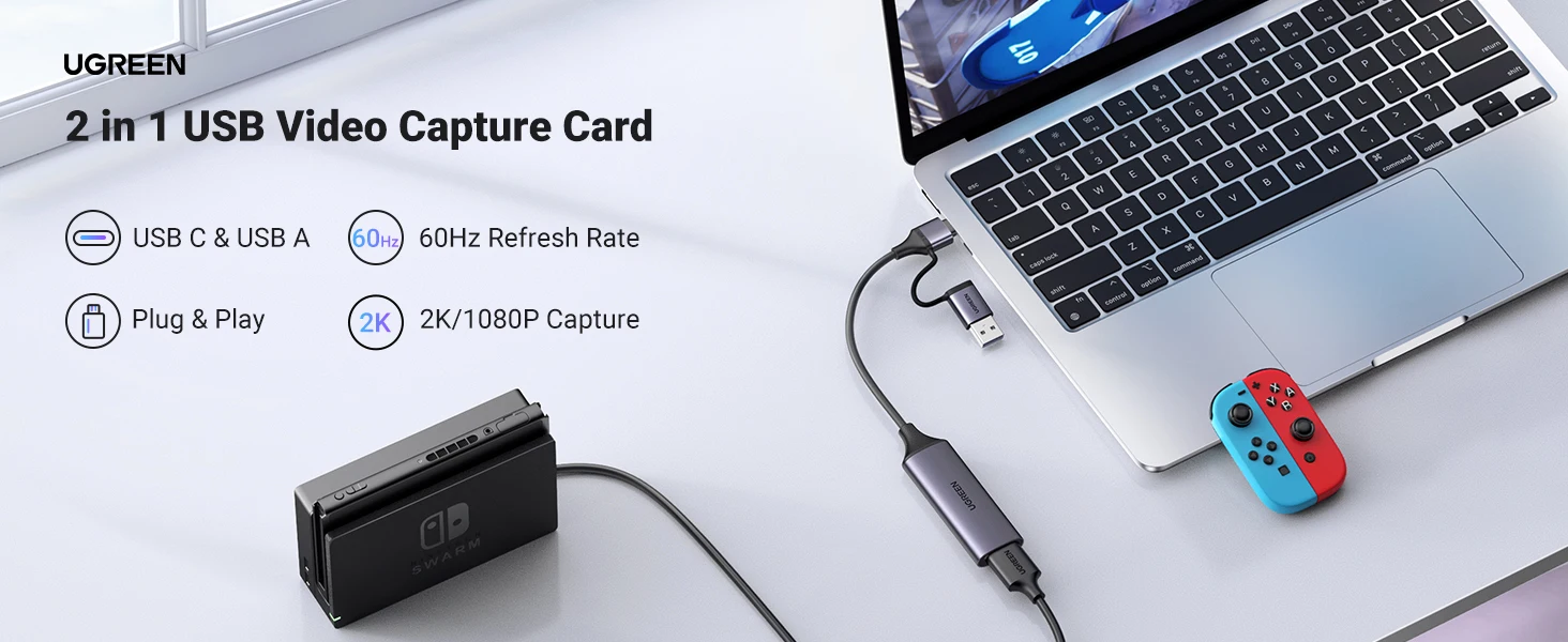 Comprar Tarjeta de captura de vídeo UGREEN HDMI 1080P @ 60Hz HDMI a USB tipo C caja de captura de vídeo para PC cámara de ordenador grabación de transmisión en vivo