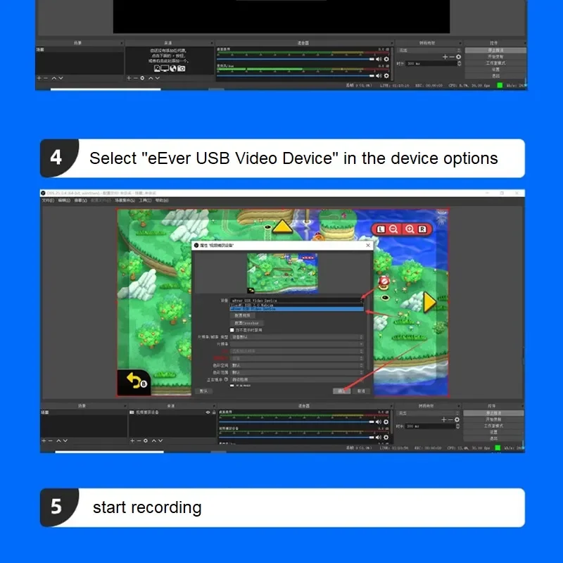 1.Con USB de alta velocidad, es fácil capturar vídeo compatible con HDMI en la computadora.