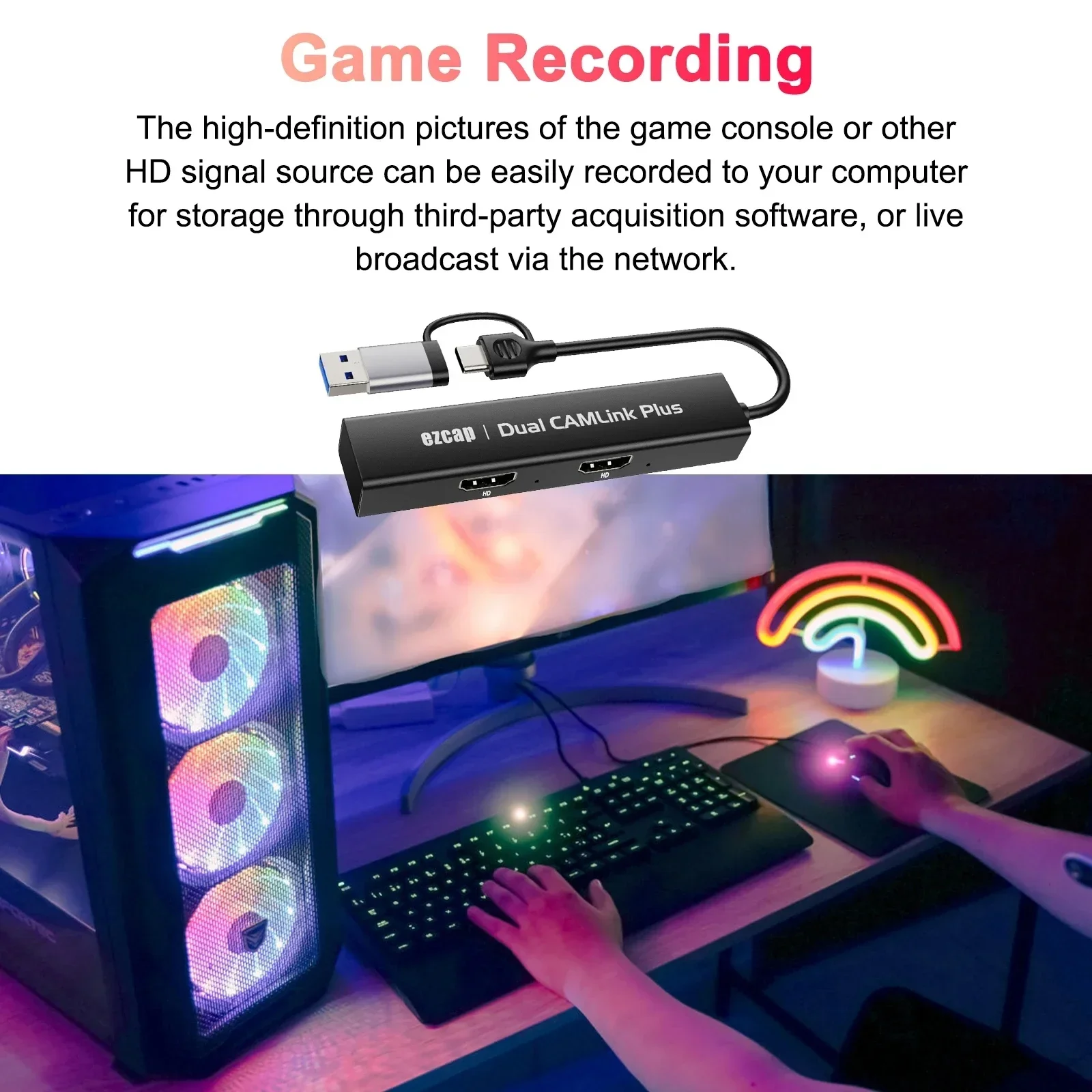 Comprar Tarjeta de captura de vídeo USB 3,0 HDMI, cámara Dual, Link, 1080p, 60fps, grabación Real para PS4, PS5, juegos, portátil, PC, videocámara, transmisión en vivo