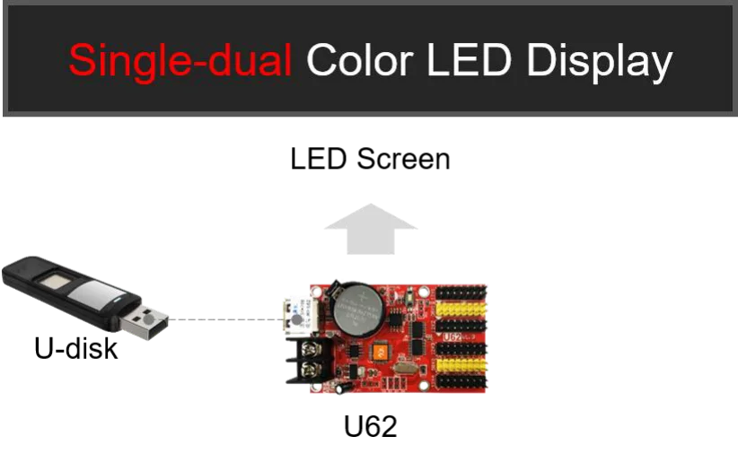 Huidu HD U62 Tarjeta de Control LED de disco USB Placa de mensajes de desplazamiento de doble Color individual para módulo LED de un solo color P10