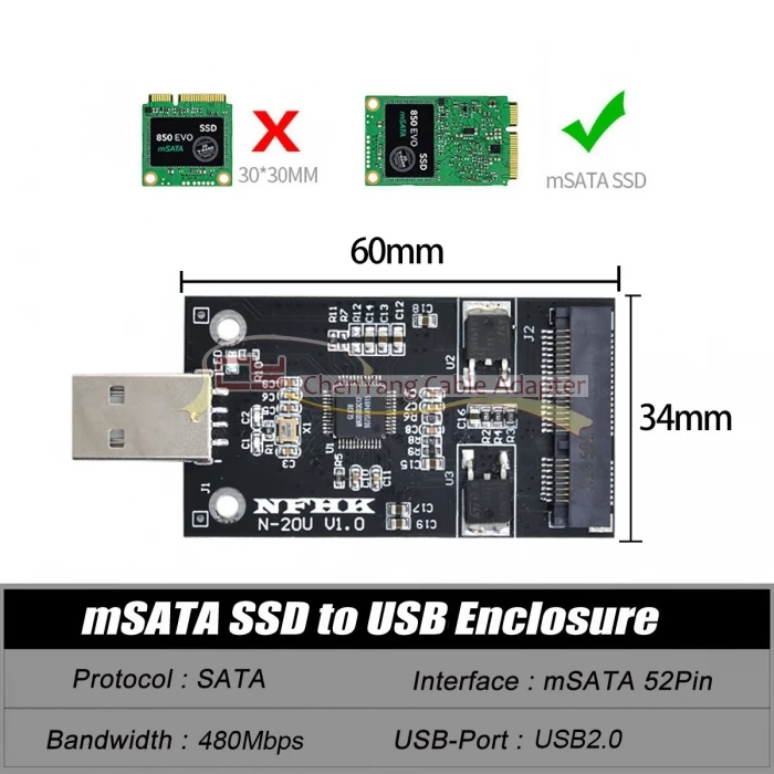Comprar Tarjeta de controlador de pluma mSATA a USB 2,0, adaptador de transporte Mini PCI-E, SSD externo PCBA