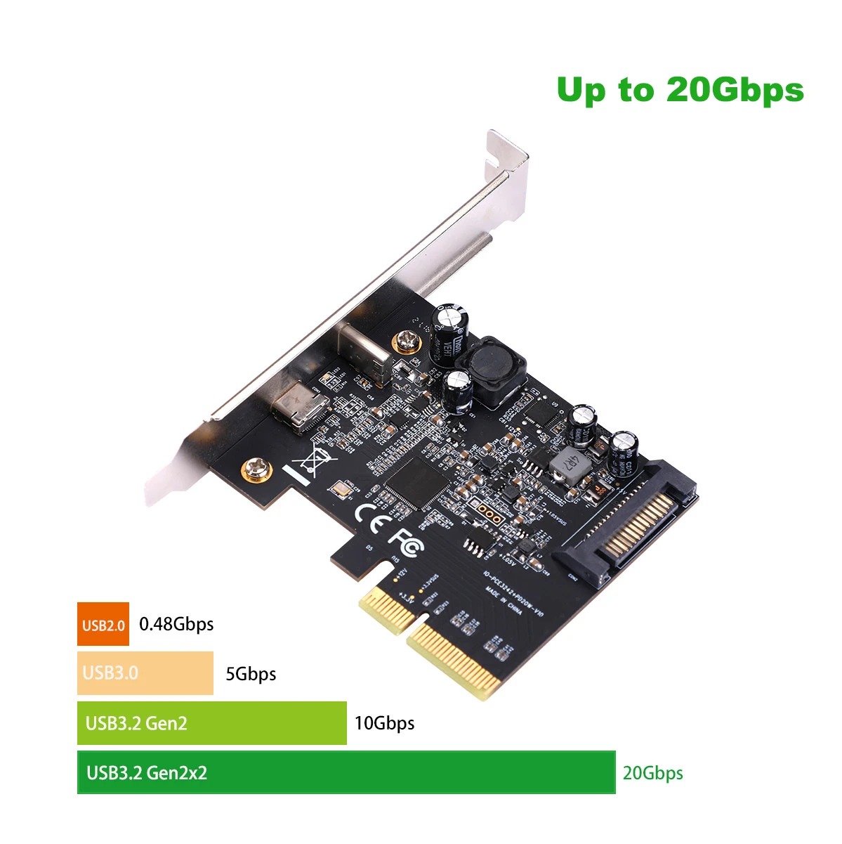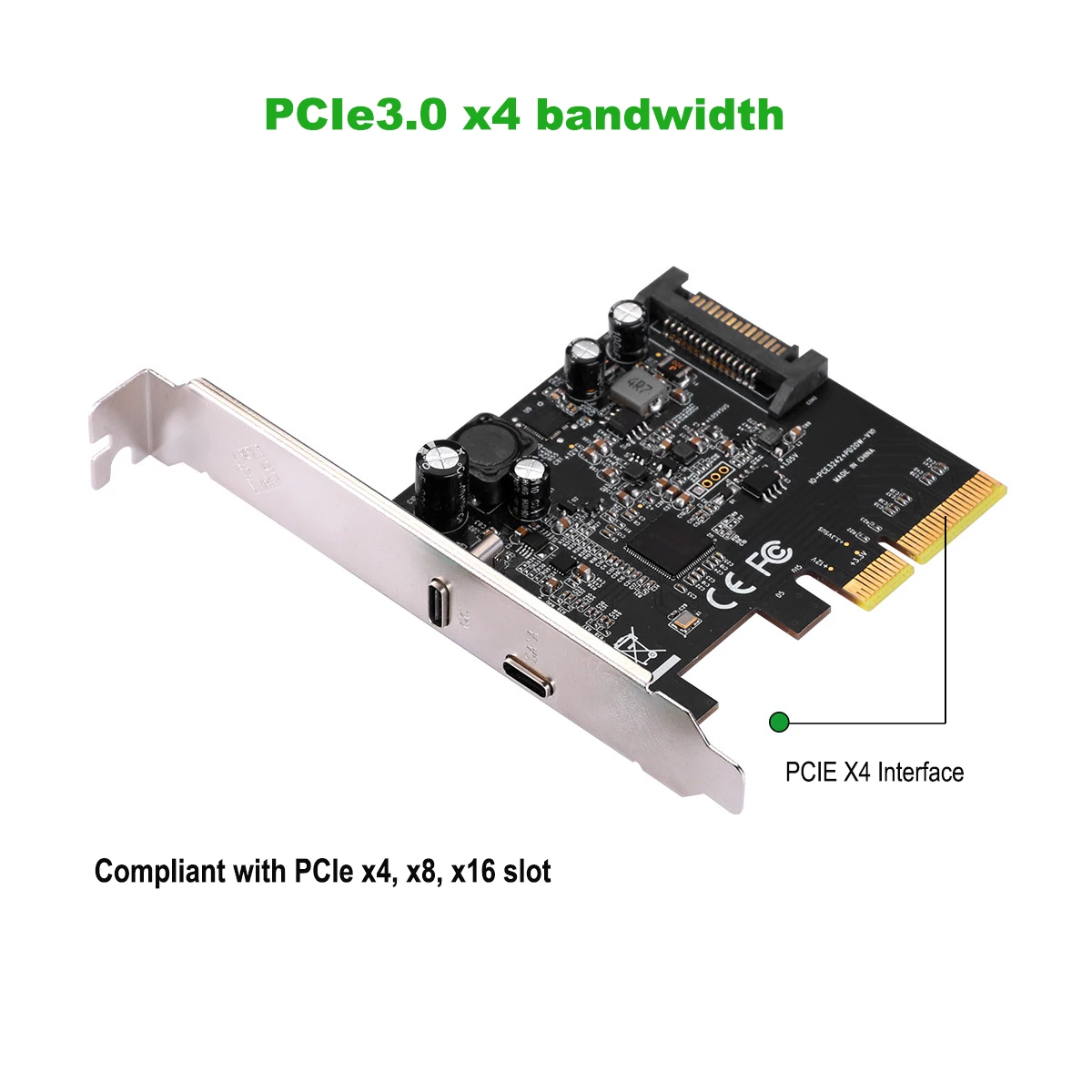 Comprar Tarjeta controladora de expansión PCIE 3,0 a USB 3,2 tipo c, 2 puertos, transferencia de datos de 20G y carga rápida de 20W, PCIE X4 para USB-C