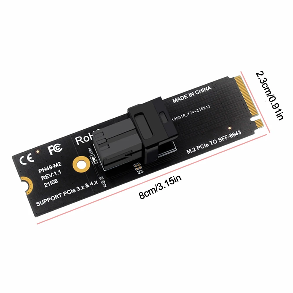 4.Fácil de usar:Esta tarjeta de expansión M.2 Mkey PCIeX4 a SFF8643 es fácil de usar, simplemente inserte la unidad de estado sólido M.2 NGFF Mkey en la ranura del adaptador, luego conecte el adaptador a la interfaz SFF8643 o SFF8639 para lograr rápidamente la transferencia y almacenamiento de datos..