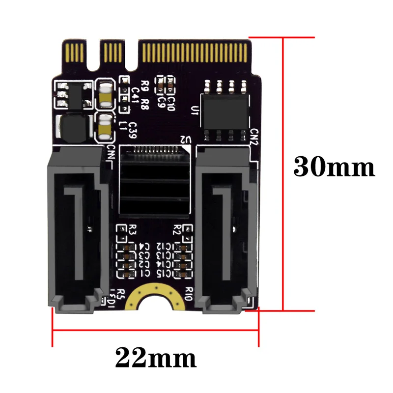 3.Dos interfaces SATA están equipadas con dos interfaces SATA estándar.Los usuarios solo necesitan insertar esta tarjeta en la ranura M.2 de la placa base y luego conectar dos unidades de estado sólido o discos duros mecánicos con interfaz SATA al mismo tiempo a través del cable de datos SATA.