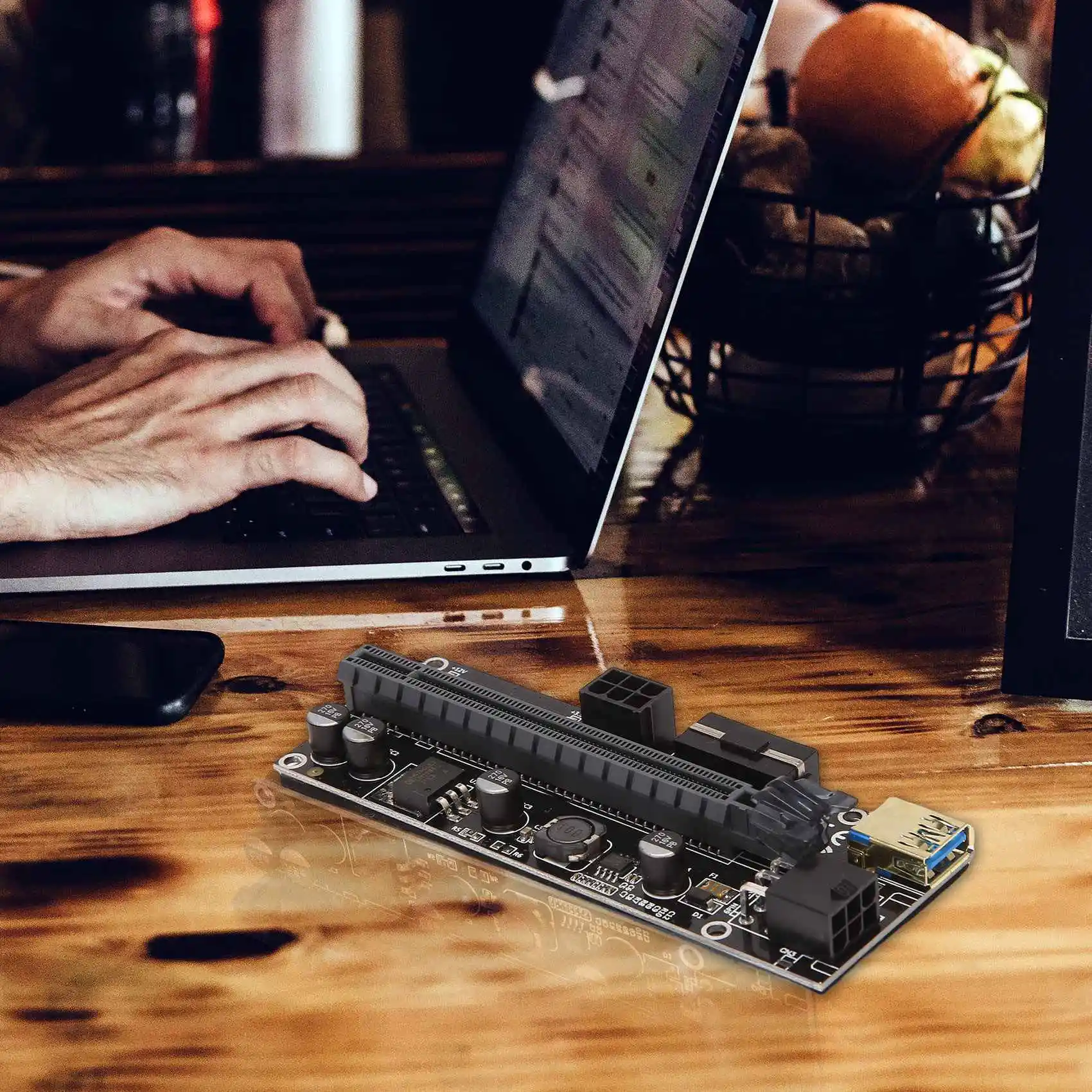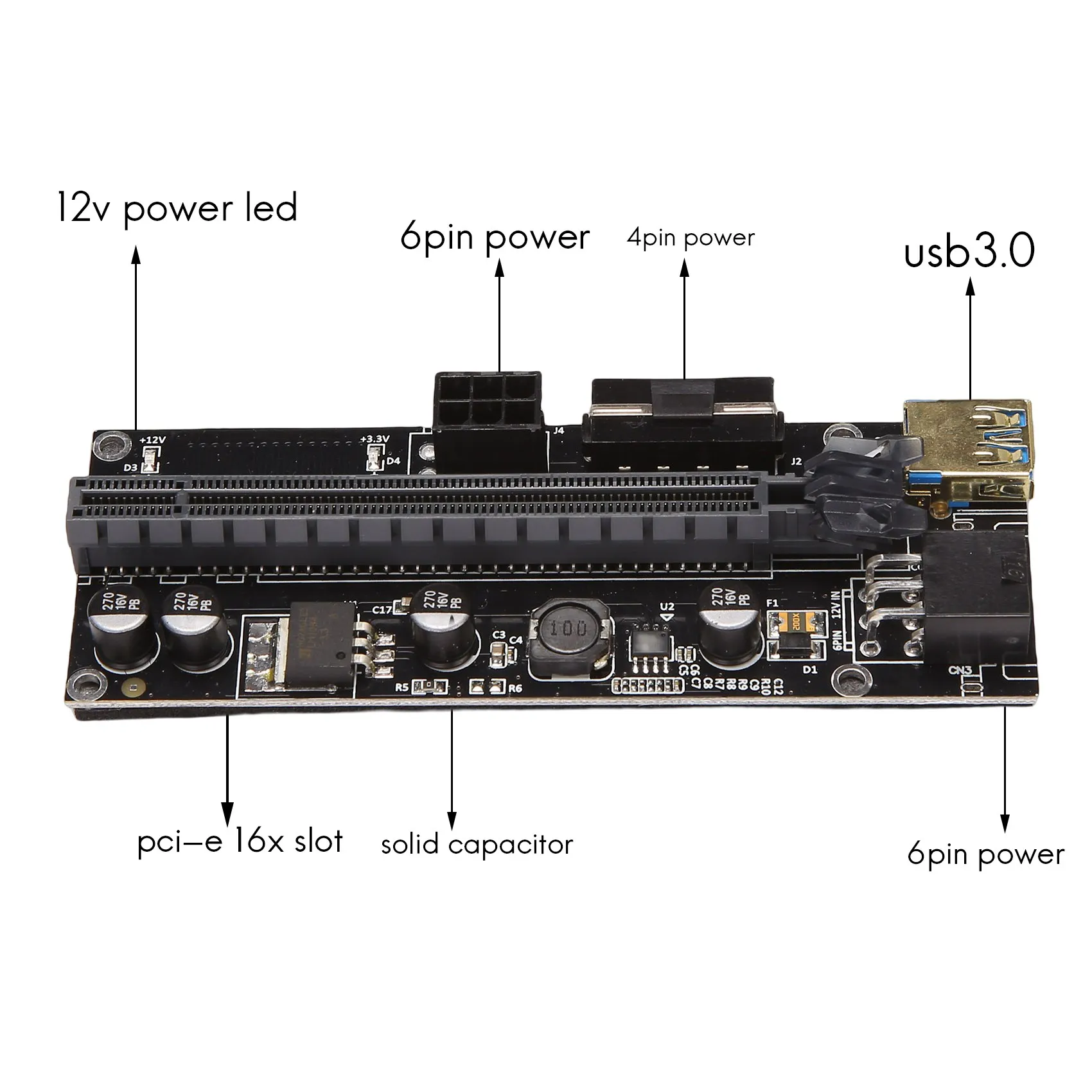 Comprar Tarjeta elevadora de gráficos con Flash azul para BTC Miner, nueva versión 009S Plus PCI-E 1X a 16X, USB 3,0, 60cm, SATA3.0, LED, 1 piezas