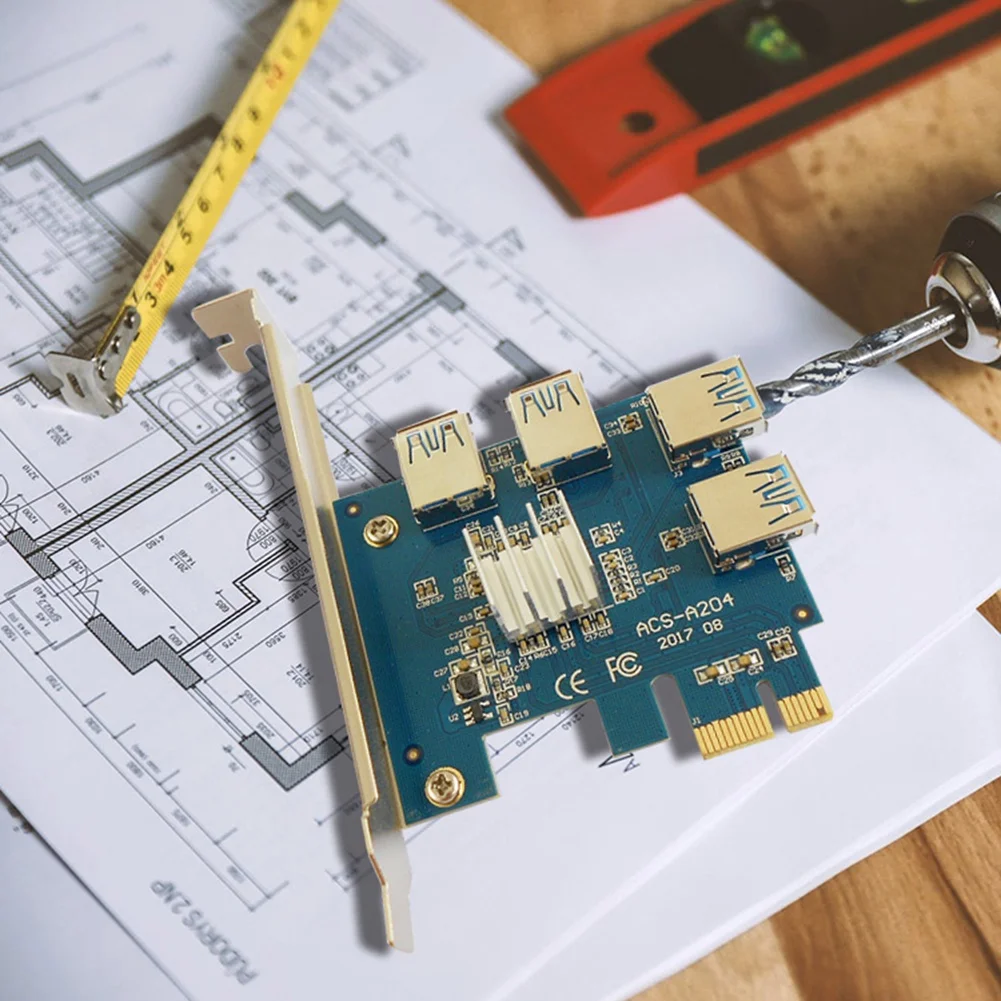 Comprar Tarjeta elevadora PCI-E, interfaz de tarjeta gráfica de 1 a 4 PCI-EX1 a PCI-EX16, una para cuatro ranuras 4X para WinXP/Win7/Win8/Win10