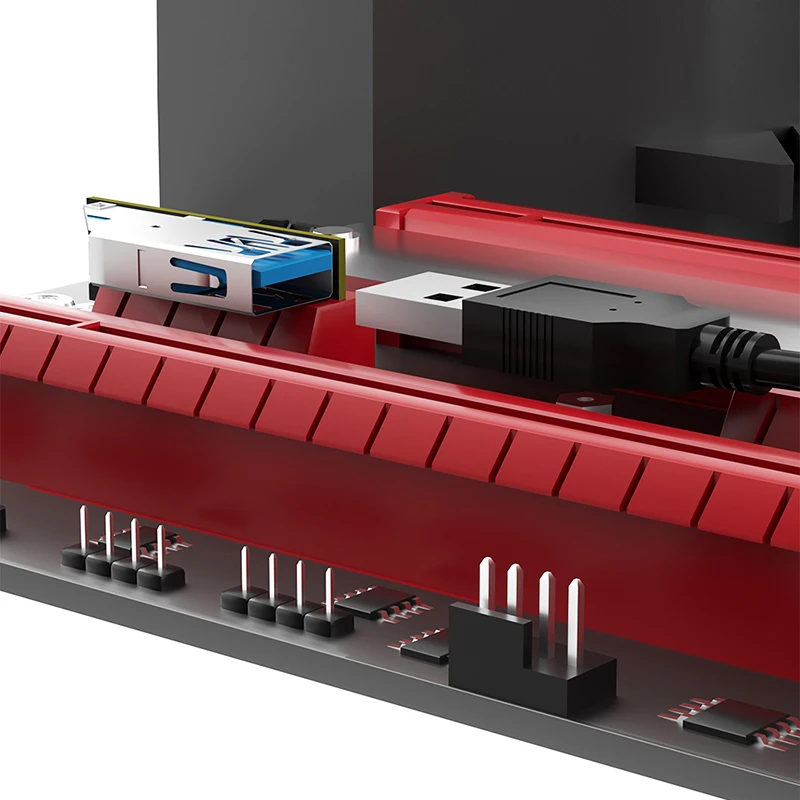 Comprar Tarjeta elevadora PCI-E PCI Express 1X a 1X, indicador LED de potencia SATA con almohadillas magnéticas para el pie para minería, extensor PCIE X1, Cable USB 3,0