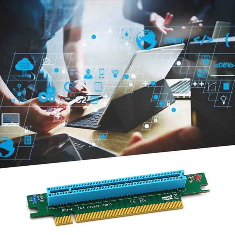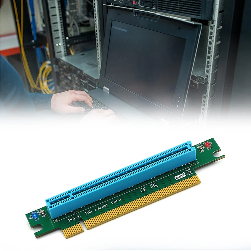 Product features: 1.This 16x PCI Express Riser Card lets you install a full-sized PCI Express card in a 1U or 2U server case, eliminating the expense of purchasing small form factor PCIe cards. 2.The PCI-Express 16X Riser Card makes the PCI-Express Card away from motherboard 3.With the PCI-Express socket directly in line with the socket on the motherboard . 4. It is the right angle riser for the PCI Express X16 buses. The connector is soldered on the component side (B side) of the board.