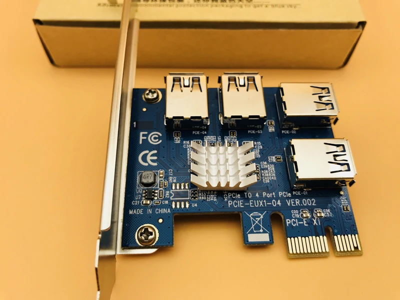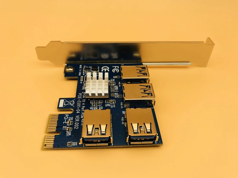 Las 4 ranuras ofrecen una gran extensibilidad.Se conecta directamente a la placa sin ningún cable extensor, se puede fijar a la carcasa.Solución de alimentación de ranura PCI-E, no se necesita cable de alimentación adicional.Solo un cable a la ranura, fácil y conveniente de instalar.Con radiador de calor IC.Especificaciones:Puerto de Bus: PCI-ECantidad de puertos: 4 X PCI-E USBTamaño: aprox. 120X66X21mm/4,72X2,6X0,83"Peso neto: aprox. 75gPeso bruto: aprox. 95gSistemas operativos compatibles: DOS, Linux, Windows XP/7/8/10El paquete incluye:1 x tarjeta elevadora PCI-E de 1 a 4