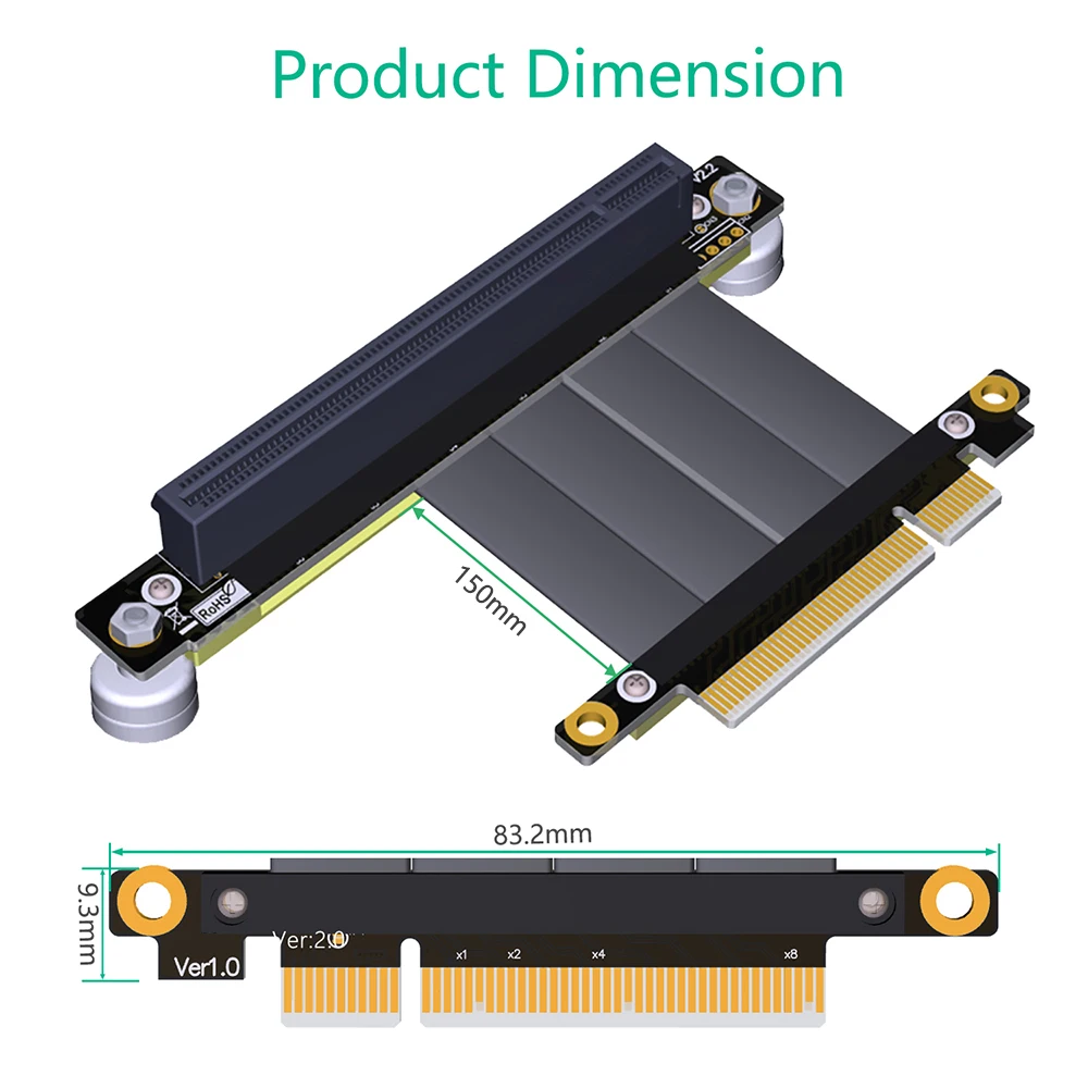 Placa elevadora PCI Express x8 a x16 Placa gráfica macho a hembra Riser PCIE 3.0 PCI-E 16x Cable de extensión de cinta con base magnética