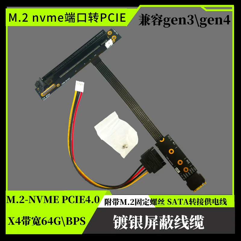 Descripción del producto: 1.Ancho de banda PCIE 4.0X4, G \ BPS, compatible con gen3 \ gen4. 2.Utilice un cable blindado plateado. 3.Admite CPU, admite Puerto M.2 de placa base a PCIE. 4.Proceso dorado de inmersión en dedos dorados. 5.Usando el conector GEN4 de nueva generación. 6.Viene con un cable de alimentación SATA. 7.Compatible con tarjeta gráfica M.2, tarjeta de red X4, unidad de estado sólido X4, tarjeta de captura X4, tarjeta de línea X4, etc.