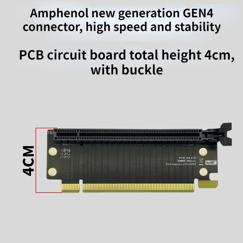 Comprar Tarjeta elevadora PCIE 4,0 X16, convertidor de placa PCB en ángulo de giro de 90 grados, tarjeta de vídeo gráfica PCI Express 16x, adaptador Gen4 de expansión GPU