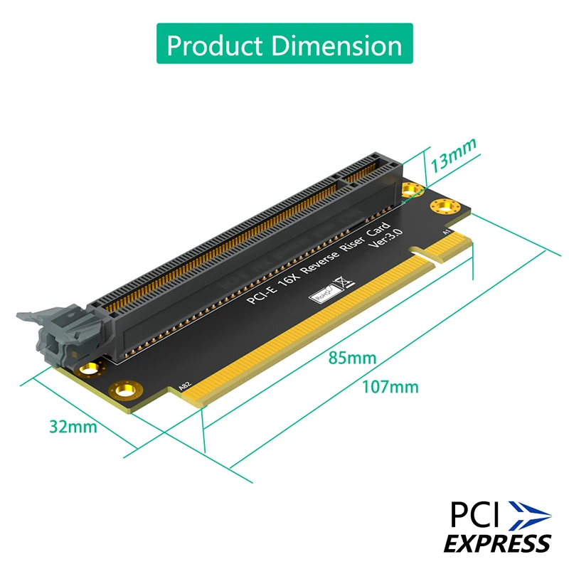 Tarjeta vertical PCIE PCI Express X16 a X16 Tarjeta de expansión macho a hembra PCI-E 3,0 16X Placa vertical inversa de 90 grados para computadora 2U