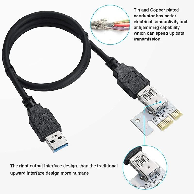4.El conector PCI-E utiliza cables blindados multicapa, que se pueden conectar al máximo sin atenuar la señal.El cable USB es suave y estable, fácil de enrutar y la tarjeta gráfica se puede colocar a voluntad.