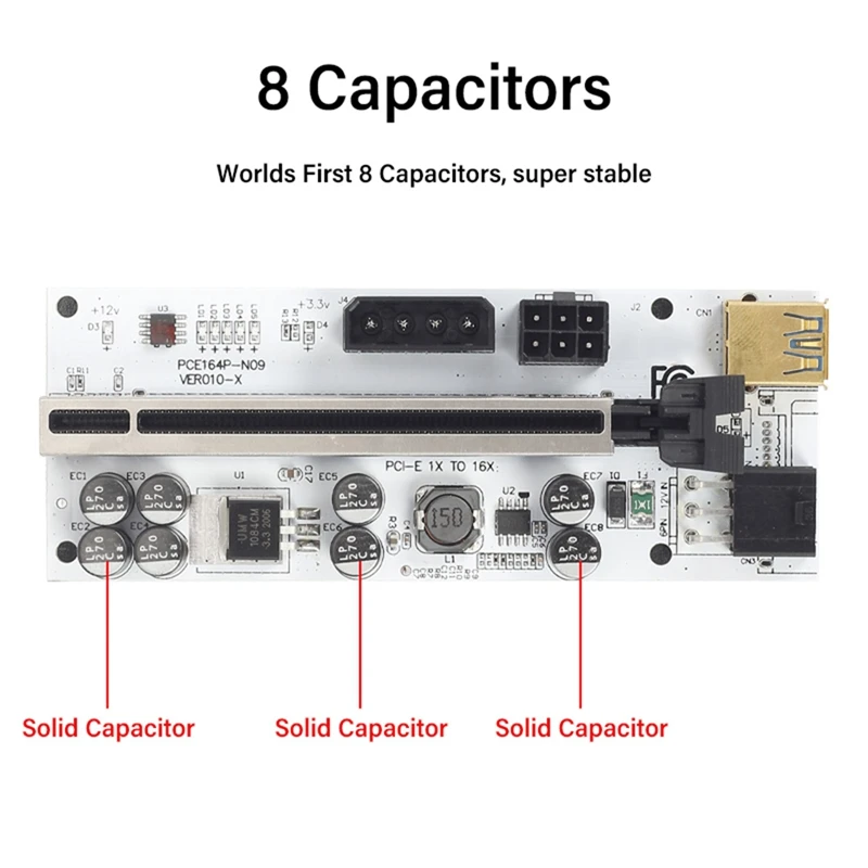 Placa elevadora PCI-E 16X de 5 x 8 condensadores