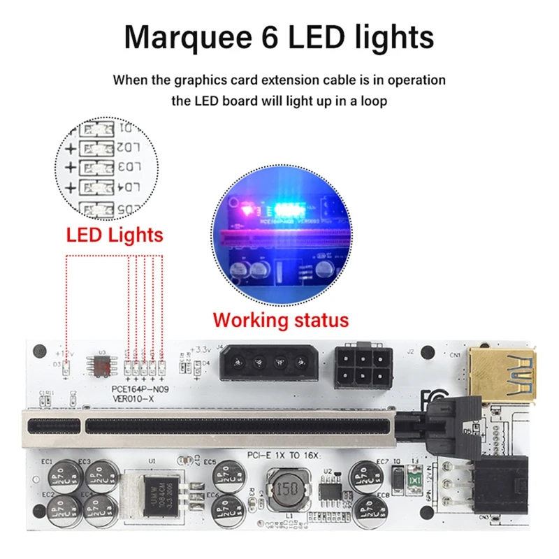 1.Este cable de extensión es adecuado para placas base con ranuras PCI-E.Inserte el cable de alimentación de la unidad de disquete cuando lo utilice.Al insertar o desconectar el cable de extensión PCI-E, asegúrese de que la computadora no tenga energía.