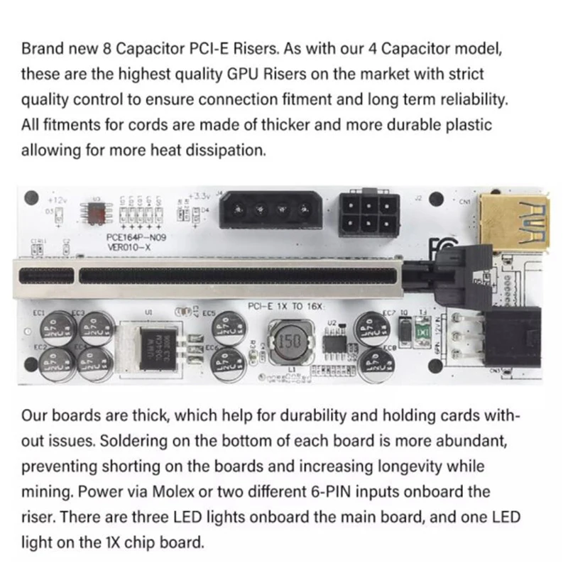 Placa elevadora PCI-E 16X de 5 x 8 condensadores