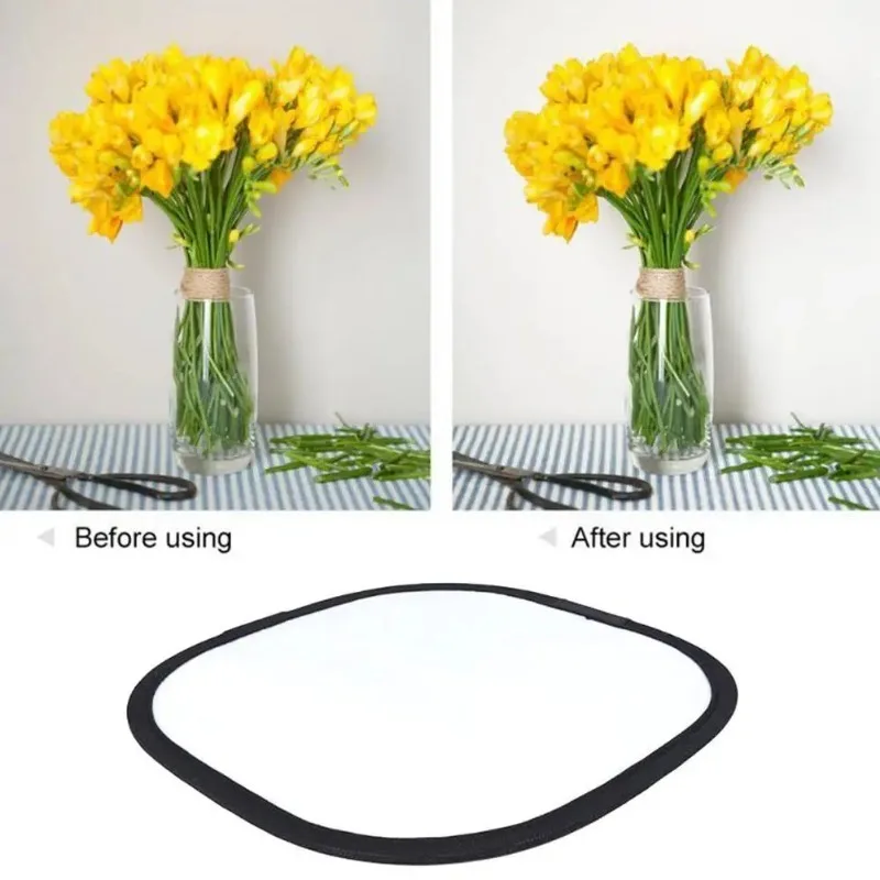 La placa de enfoque de 30 cm es gris por un lado y blanca por el otro.