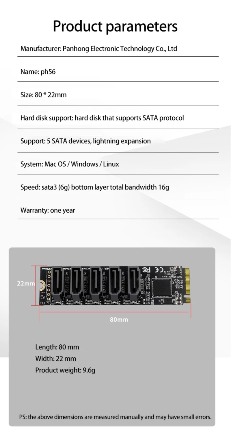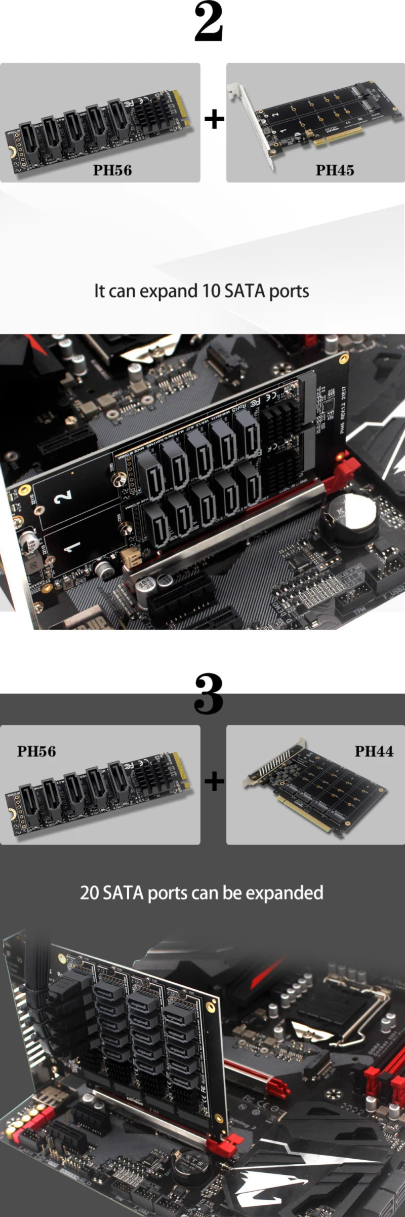 Accesorios de tarjeta adaptadora 5 puertos expansión SI-Pex40139 para SATA III 6GB/S M2 PCIe PH56 M.2 expansión de computadora JMB585