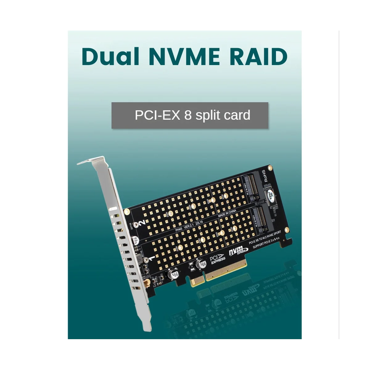Comprar Tarjeta de expansión de disco doble PCI-E X8, adaptador de expansión SSD, NVME M.2, NVME Dual extendido, tarjeta dividida PCI-E X8