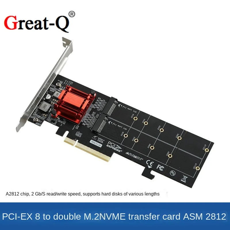 Comprar Tarjeta de expansión de disco duro PCIE3.1 X8 dual M.2, chip ASM1812, compatible con protocolo NVME, tarjeta de expansión de velocidad completa