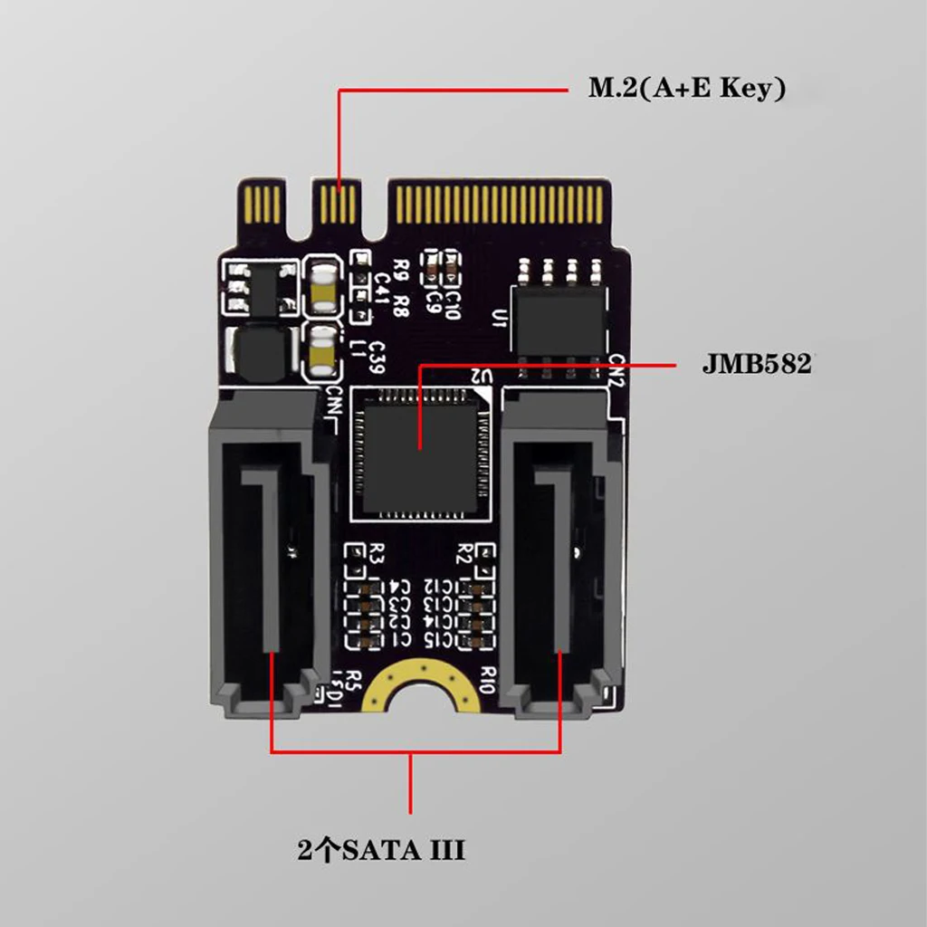 M2 (llave A + E) a tarjeta de expansión SATA3.0 de doble puerto PCle 3,0 KEY A + E WIFI M.2 a SATA para tarjeta adaptadora NGFF 2230 SSD para ordenador PC