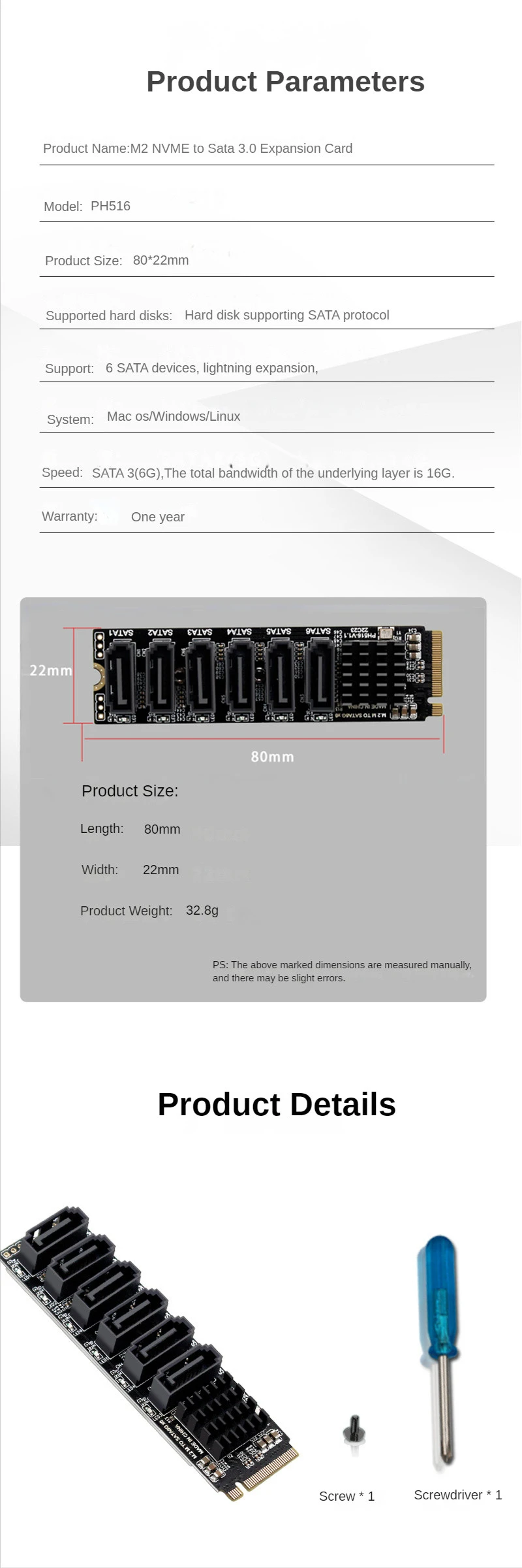 Tarjeta elevadora M.2 Sata PCIE de 6 puertos M2 NVME a Sata 3,0 Tarjeta de expansión ASM1166 6 GB/S Adaptador extendido 6X SATA3.0 Expansión verticalCaracterísticas: 100% nuevo y de alta calidad