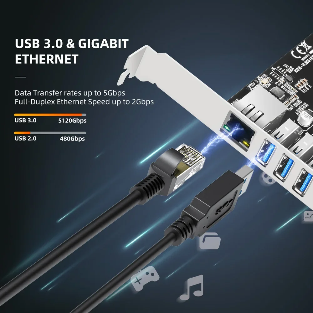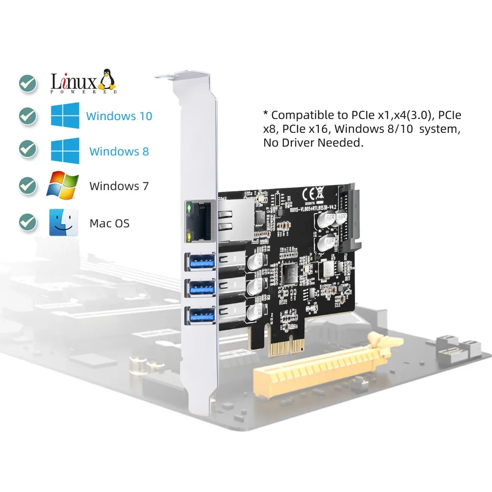Comprar Tarjeta de expansión MAIWO PCIe a RJ45 USB3.0 + tarjeta adaptadora de puerto Gigabit Ethernet para computadora de escritorio Host tarjeta de expansión integrada