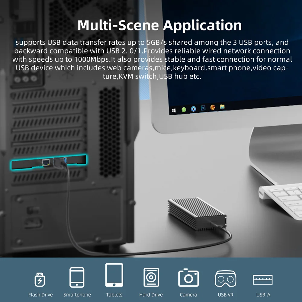 Con puertos USB3.0 Ax3, expande tres dispositivos USB
