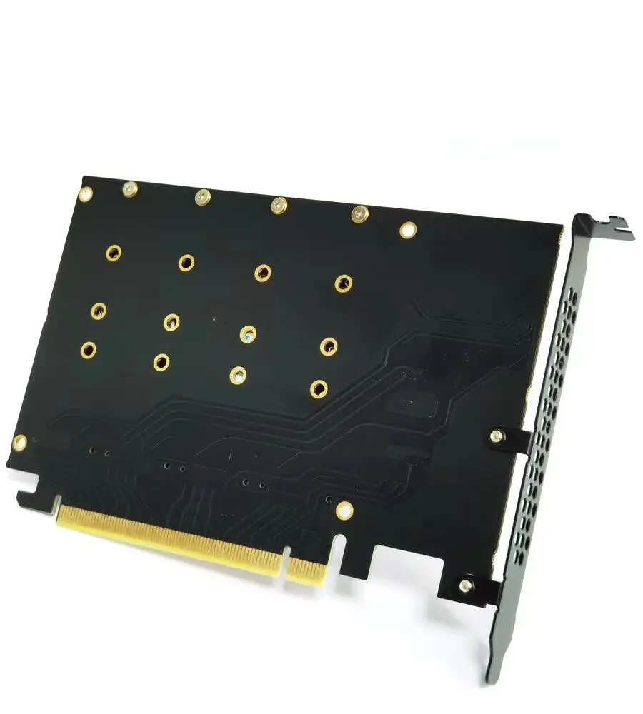 Esta tarjeta adaptadora tiene 4 tarjetas de expansión que pueden expandir simultáneamente 4x32 Gbps señales de velocidad completa.