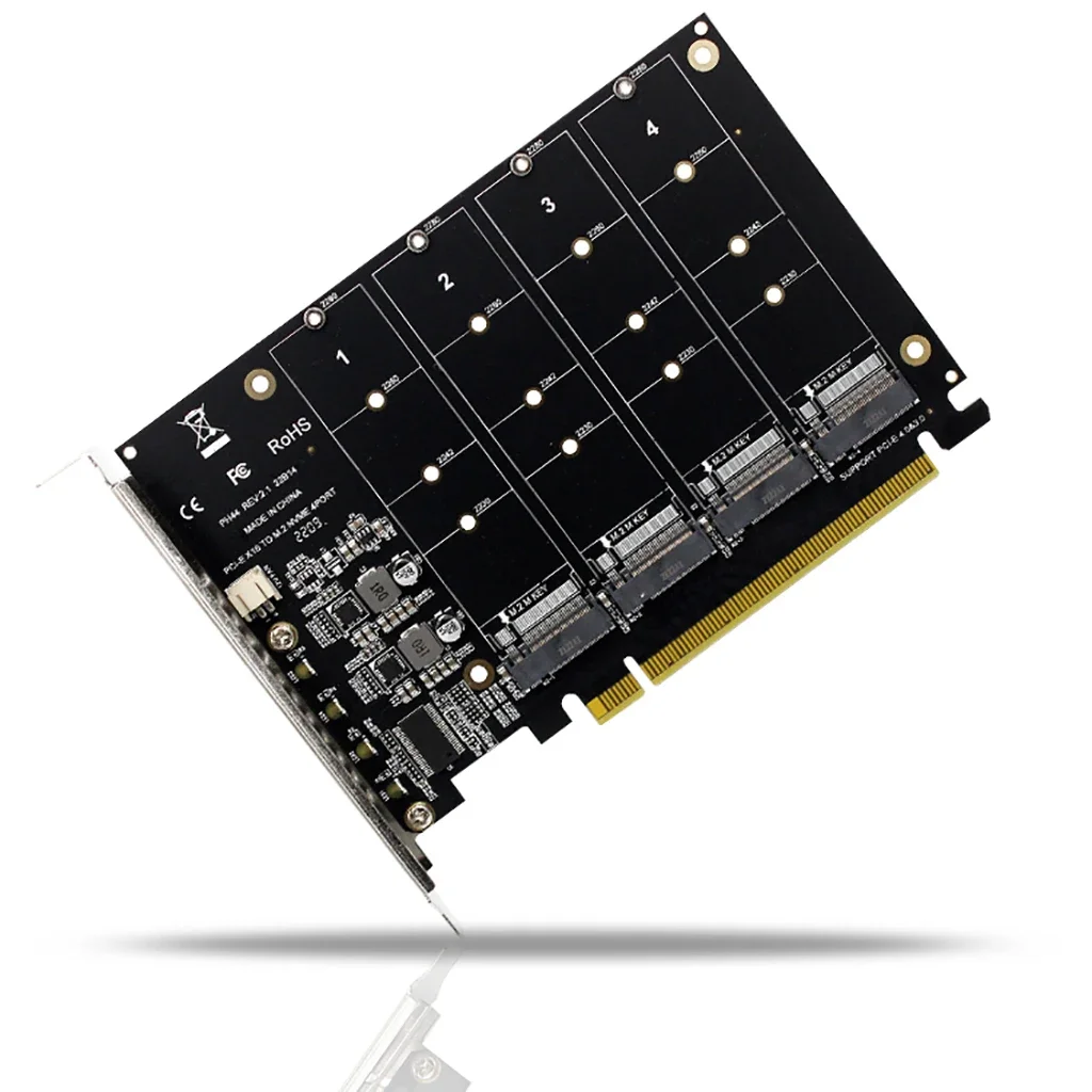 Comprar Tarjeta de expansión NVMe M.2 m-key 2230, 2242, 2260, 2280, SSD, PCI Express, 4,0x16, 4 Bay, 32Gbps, PCI-E, compatible con 4 X M.2 SSD