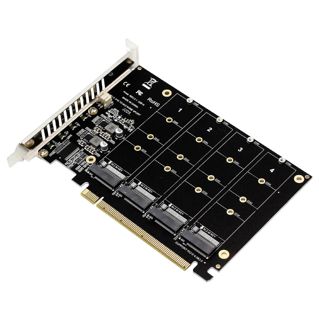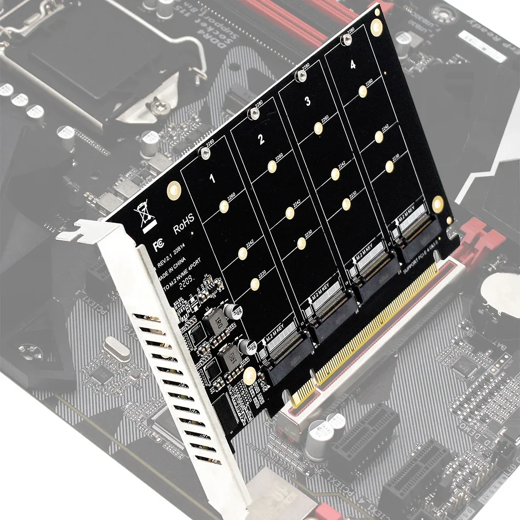 Comprar Tarjeta de expansión NVMe M.2 m-key 2230, 2242, 2260, 2280, SSD, PCI Express, 4,0x16, 4 Bay, 32Gbps, PCI-E, compatible con 4 X M.2 SSD
