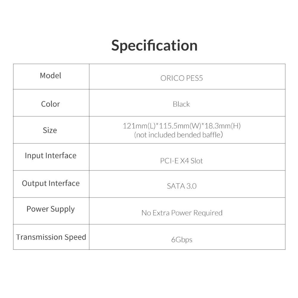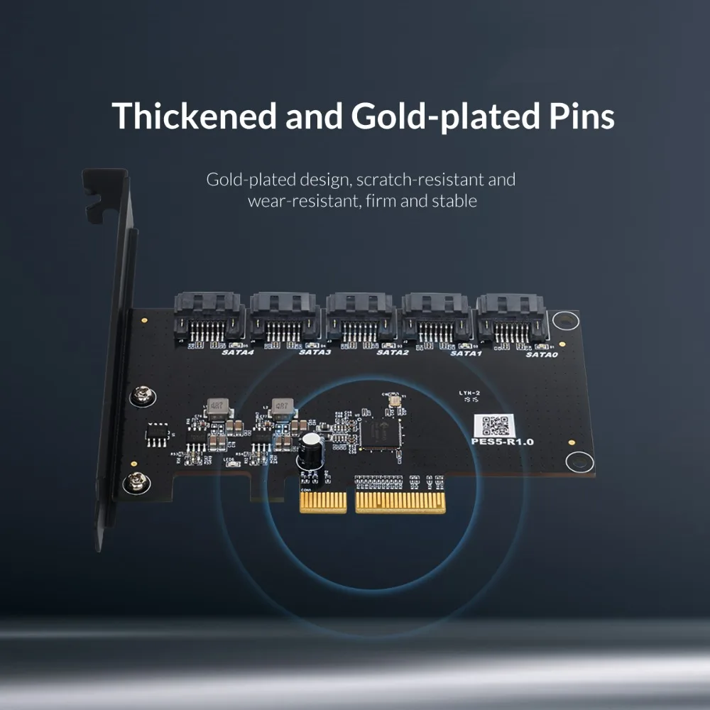 Comprar Tarjeta de expansión ORICO PCI-E a SATA3.0 de 5 puertos Ranura PCI-E X4 compatible con concentrador adaptador PCI-E a SATA de 6 Gbps
