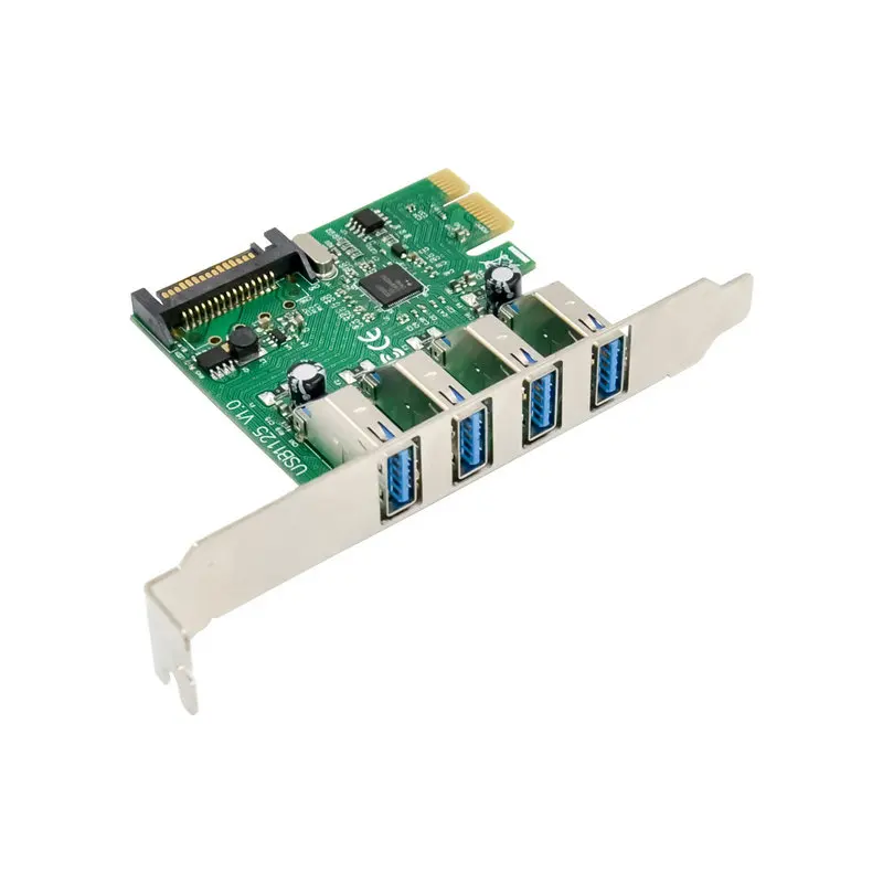 Comprar Tarjeta de expansión PCI-E de 4 puertos USB 3,0, adaptador HUB USB 3,0 PCI Express, controlador USB3.0 de 4 puertos, NEC720201 con alimentación SATA