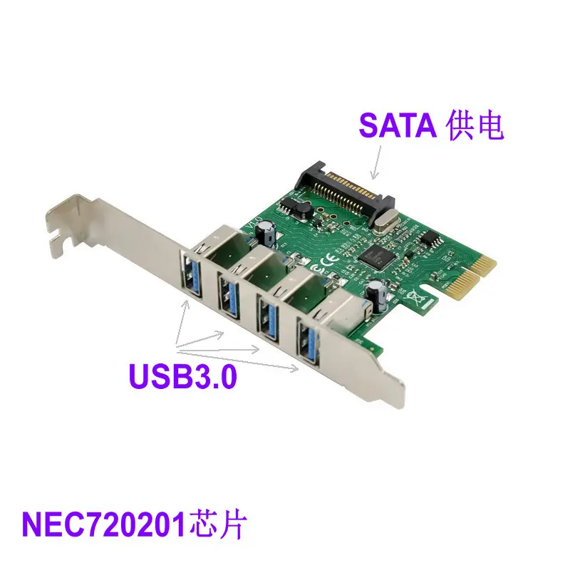 Comprar Tarjeta de expansión PCI-E de 4 puertos USB 3,0, adaptador HUB USB 3,0 PCI Express, controlador USB3.0 de 4 puertos, NEC720201 con alimentación SATA