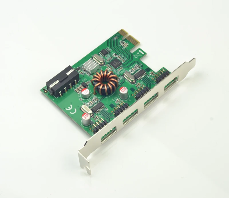 INTRODUCCIÓNEsta tarjeta controladora de host PCI-Express 2,0 USB 2,0 cumple con el bus serie universal 2,0Especificación estándar y PCI Express Generación 2. El producto es compatible con los dispositivos USB 2,0 actuales que funcionan a alta velocidad (480 Mbps), velocidad completa (12 Mbps) yModos de baja velocidad (1,5 Mbps). Este producto es una opción ideal para computadoras de escritorio que necesitan mayor volumen y conectividad de transferencia de datos de mayor velocidad con dispositivos USB,Como un disco duro externo, unidad de estado sólido (SSD), etc.CARACTERÍSTICAS Y ESPECIFICACIONESGeneral1. Basado en Renesas USB 3,0 Host Controller IC2. Totalmente 8 puertos USB 2,03. Admite ordenador de escritorio estándar4. Controladores WHQL certificados por Microsoft para Windows 10, 8,1, 8, 7, Vista, XP, Server 2003 32-/64-bitY sistemas operativos Server 2008 R2 de 64 bitsInterfaz PCI-Express1. Interfaz PCI-Express 2,0 1-Lane (x1)2. Cumple con la especificación base PCI Express 2,03. Admite la revisión de la especificación de la interfaz de administración de energía PCI-Bus 1,2Interfaz USB1. Interfaz USB 2,0 de alta velocidad (Mbps 480), velocidad completa (12Mbps) y baja velocidad (1,5 Mbps)2. Admite todos los tipos de transferencia de datos compatibles con USB (Control / Bulk / Interrupt / Isochronous)3. Admite todos los periféricos compatibles con USB (por ejemplo, teclado, ratón, monitor, joystick, etc.)4. Soporte completo de inserción dinámica en tiempo real y eliminación de dispositivos USB5. Conector de alimentación HDD interno para suministrar energía de + 5V a los puertos USB.1 x tarjeta de expansión PCI-E a USB2.0