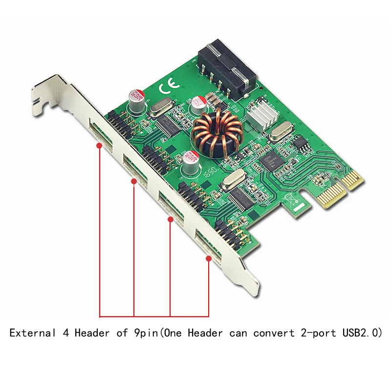 Comprar Tarjeta de expansión PCI-E USB 2,0, 4x conector externo de 9 pines, 8 puertos, usb 2,0 a adaptador de tarjeta PCIe, concentrador USB