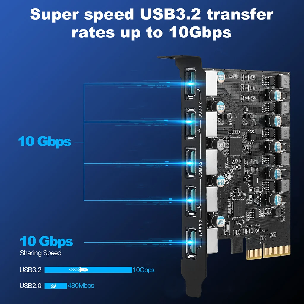 Comprar Tarjeta de expansión PCI-e USB 3,2/3,1/2,0 con 5 puertos tipo-a Dual tipo-c tarjeta adaptadora de supervelocidad USB3.2 Gen 2x1 para escritorio 10gbps