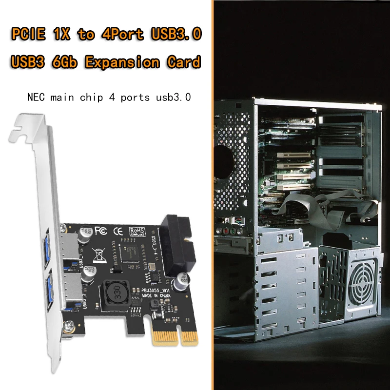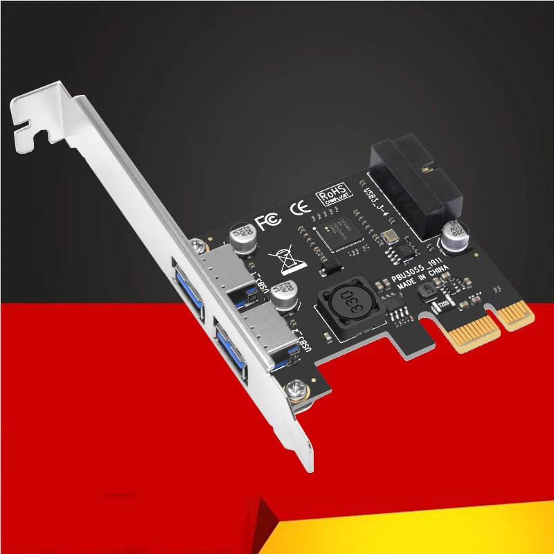 Comprar Tarjeta de expansión PCI Express USB 3,0, adaptador PCI cabezal e a 3 + 2 puertos USB de 19 pines, controlador PCIe PCI-e X1, Chip NEC para PC