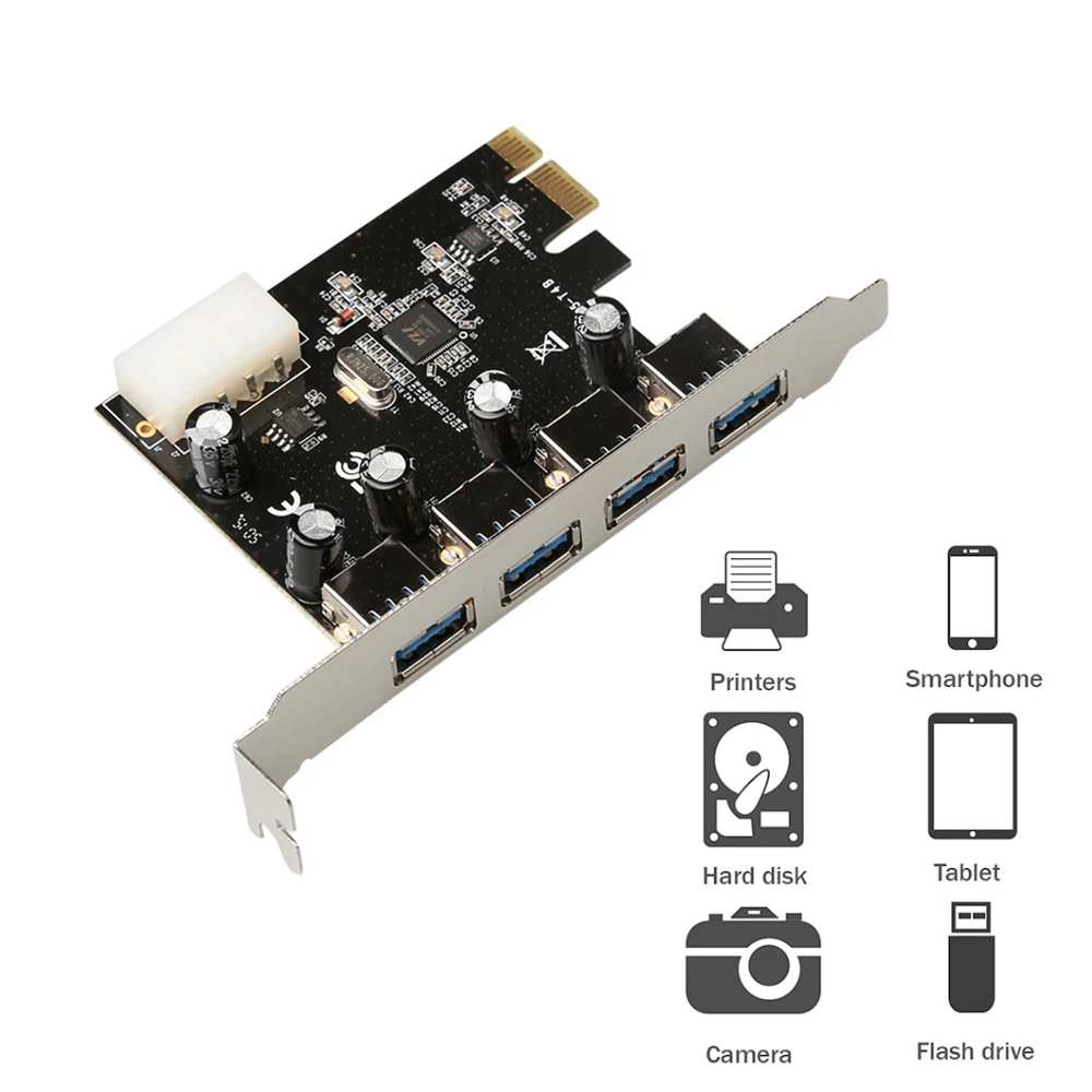 Esta tarjeta de expansión está equipada con cuatro USB 3 estándar.0 interfaces en la parte posterior, que pueden conectar algunos dispositivos que no necesitan ser desconectados con frecuencia, mientras que el frente se puede usar para usar algunos dispositivos que deben desconectarse con frecuencia, ¡lo que lo hace más cómodo de usar!