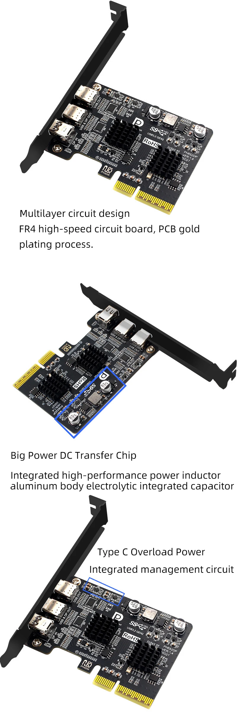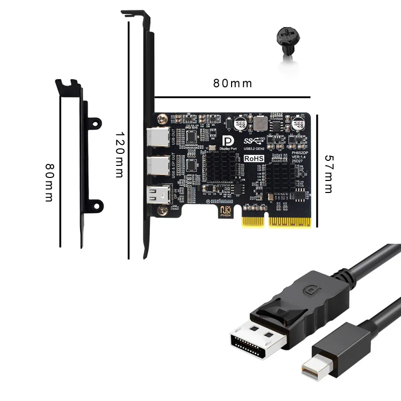Comprar Tarjeta de expansión PCI-e X4 a tipo C USB 3,2 10Gbps Gen 2 puerto USB-C Dual DP1.4 4K @ 60Hz convertidor adaptador de vídeo controlador ASM3142