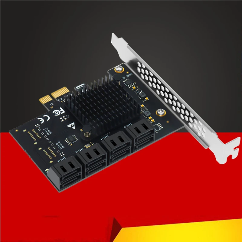 Comprar Tarjeta de expansión PCIe a SATA, multiplicador SATA de 8 puertos, controlador PCI Express X1, adaptador SATA 3 HDD SSD, elevador PCI E SATA3 para minería