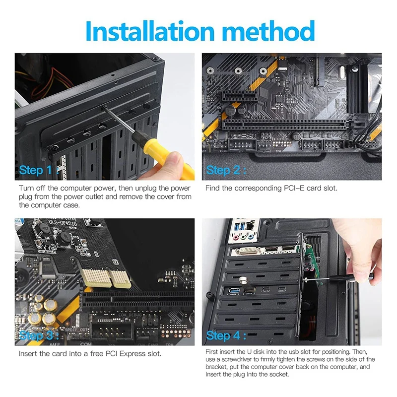 [Tarjeta de expansión USB de 4 puertos] Este UP4210 permite a los usuarios agregar 4X puertos USB (2 Puertos, 2 puertos, 2 puertos, 2 puertos, 2 puertos, 2 puertos, 2 puertos, y 2 puertos, en los ordenadores de escritorio, mediante la interfaz PCI Express(1X).