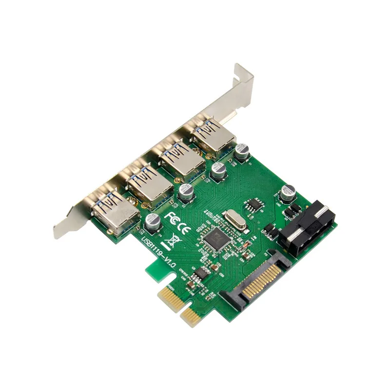 Comprar Tarjeta de expansión PCIE USB 3,0 de 4 puertos PCI-E Chip de cuatro puertos de alta velocidad a través de tarjeta USB 3,0 VL805 tarjeta adaptadora de fuente de alimentación dual