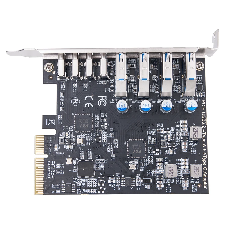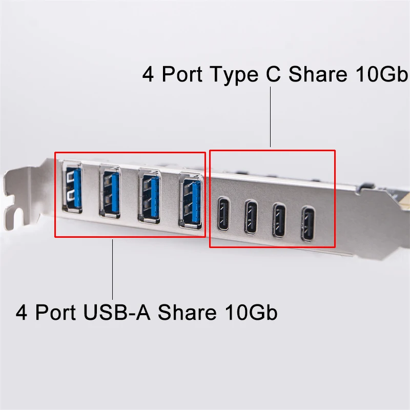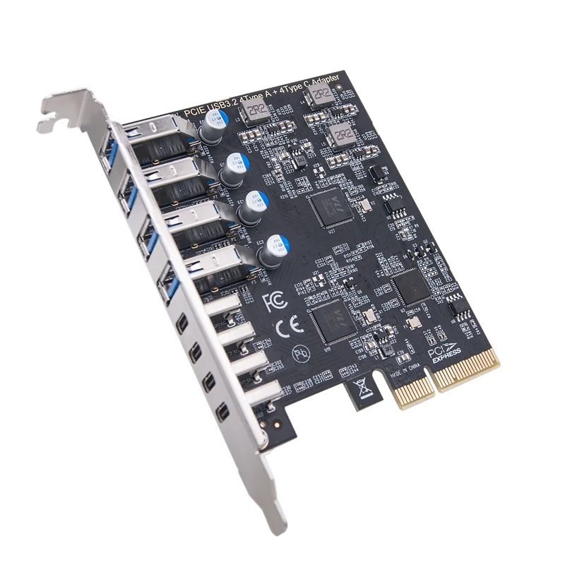 Comprar Tarjeta de expansión PCIE USB3.2 GEN2 10gbps, PCI Express X4 a 4 puertos TYPE-A + 4 puertos tipo C, adaptador USB HUB multiplicador para PC de escritorio