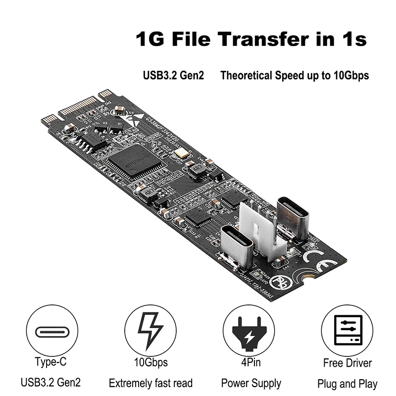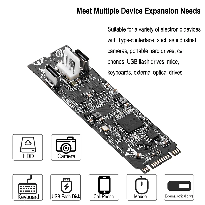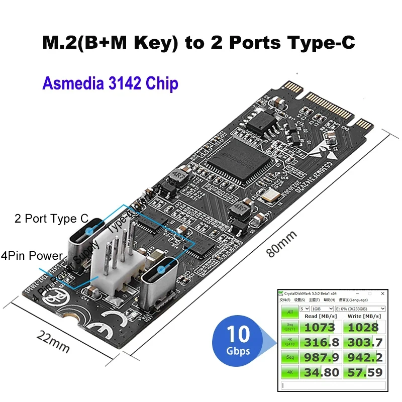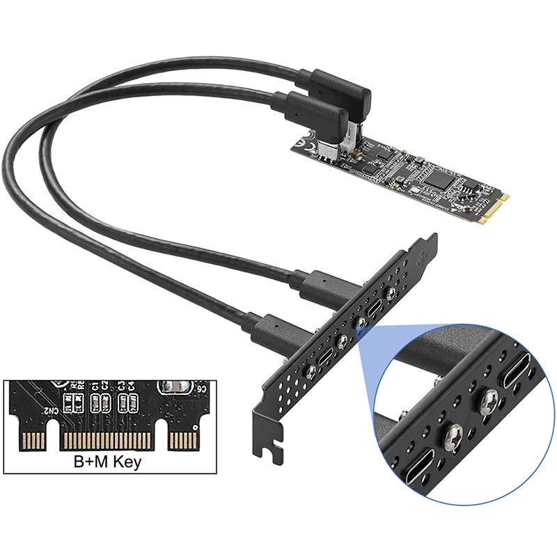 Comprar Tarjeta de expansión tipo C de 2 puertos, Chip ASM3142, USB 3,2, Gen2, 10gbps, controlador USB C, NGFF, 22x80, clave B, M, elevador de transferencia de datos